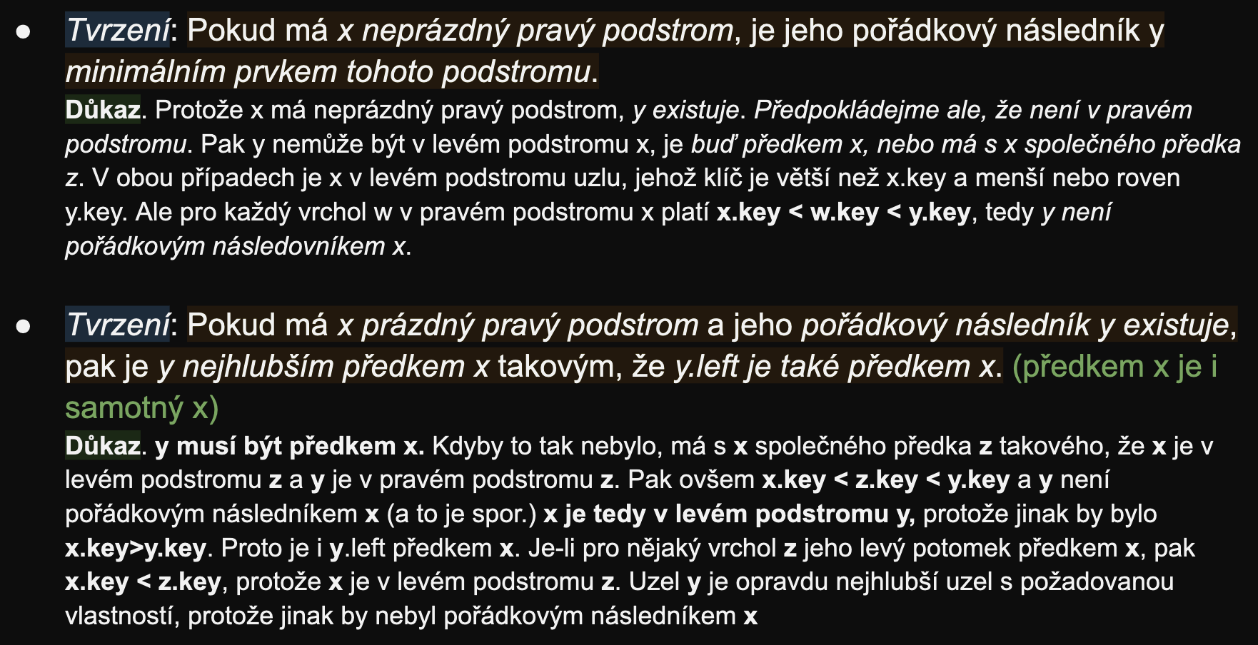 . - Pokud je vrchol v pravém podstromu vrcholu , pak