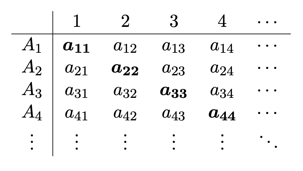 Důkazy se obvykle provádí tzv. diagonální metodou
