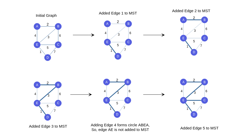 1. Setřiď hrany vzestupně podle ohodnocení, tj. utvoř posloupnost všech hran z tak, že