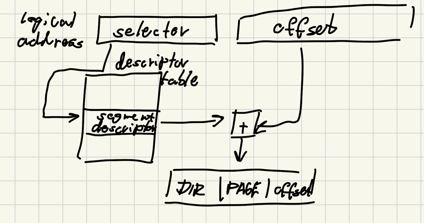 • používají lineární adresu ve tvaru segment + offset a ta se poté převádí na fyzickou adresu pomocí stránkování