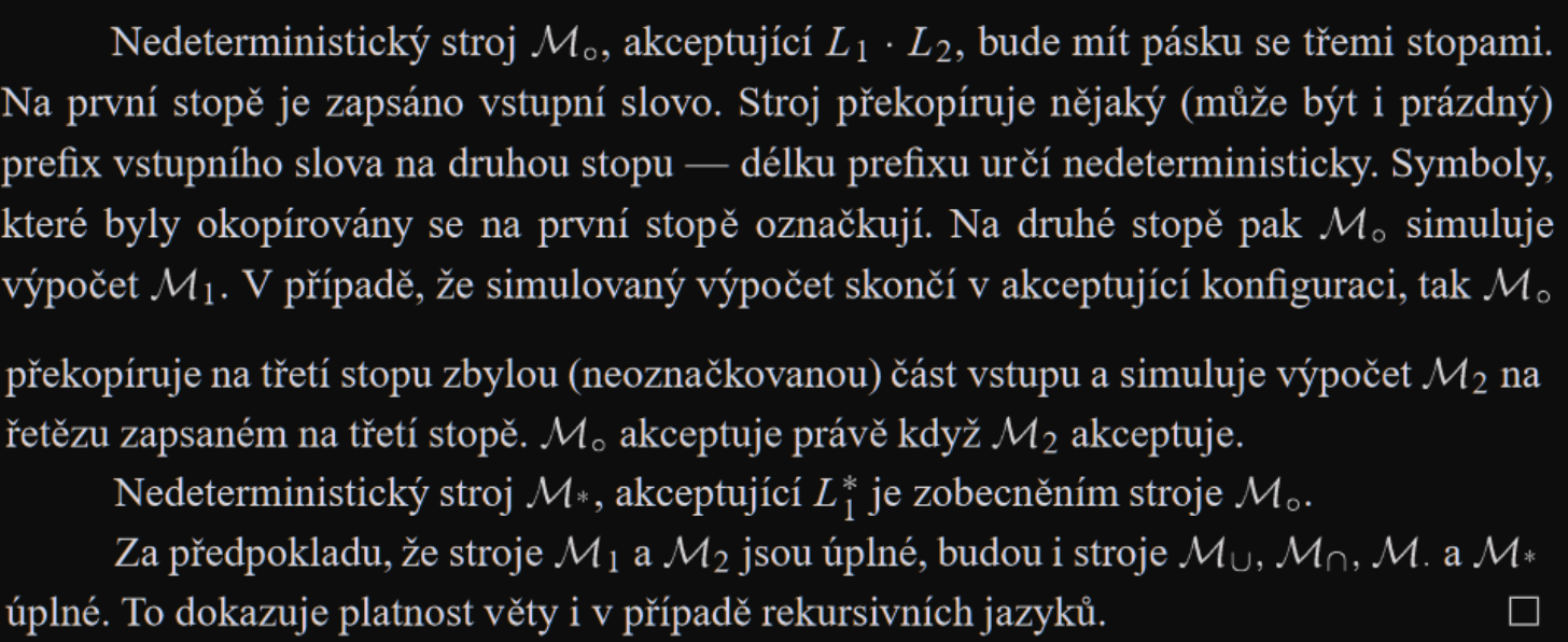 - Třídy rekurzivních a rekurzivně spočetných jazyků jsou uzavřeny vzhledem k operacím .